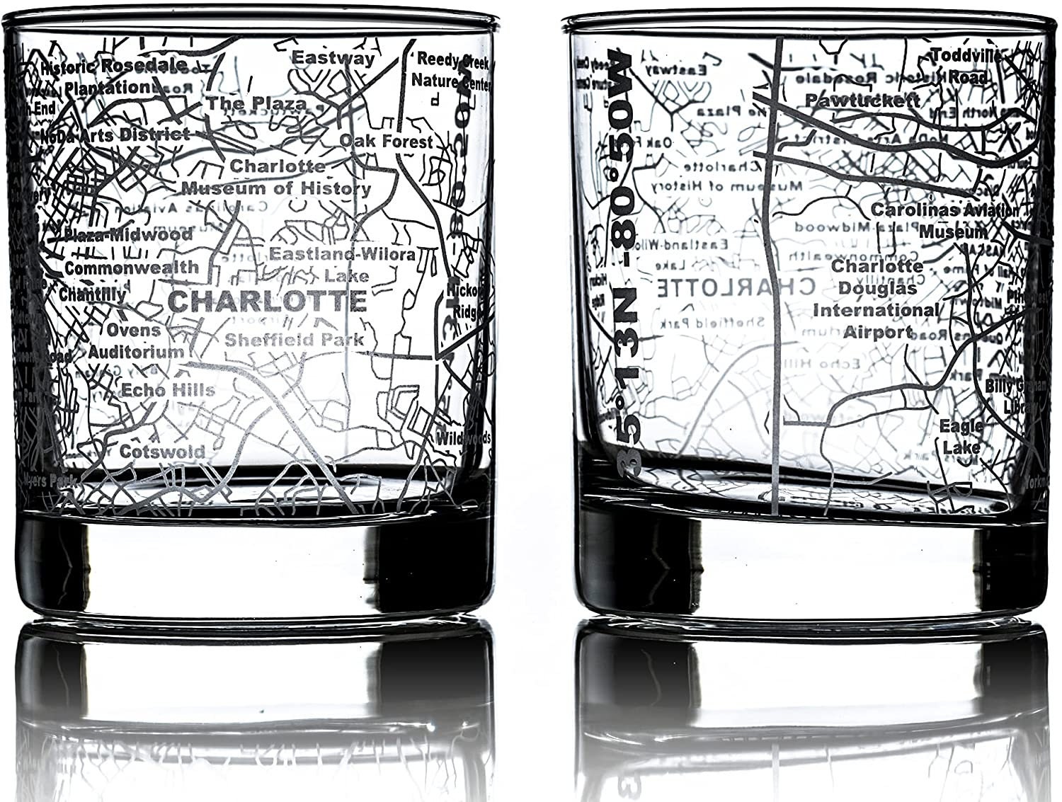 Charlotte City Map Etched Whiskey Glasses Old Fashioned Etsy